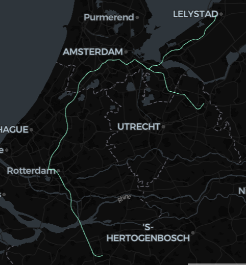 You can further process this dataset into Nodes, Ways, and Relations with SQL, which is beyond the scope of this doc, but nevertheless here is a minimal example to visualize some data (showing the route shapes of the Dutch train class Intercity Direct):