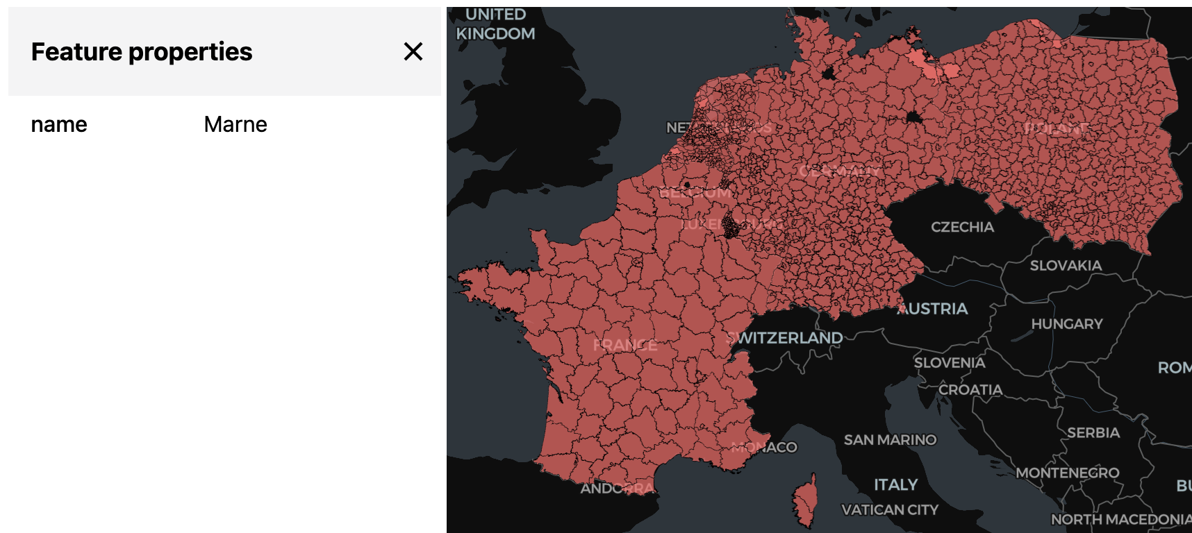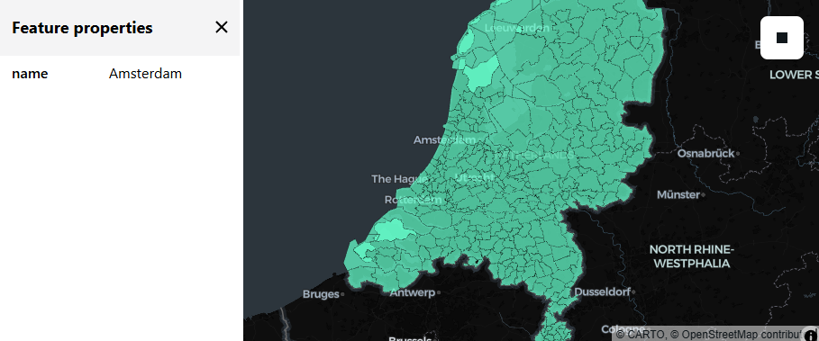 If all went well and you see data on the map (not only the screenshot): note that you can not just zoom and pan, but can also click on a polygon to see the value of the non-geometry column(s).